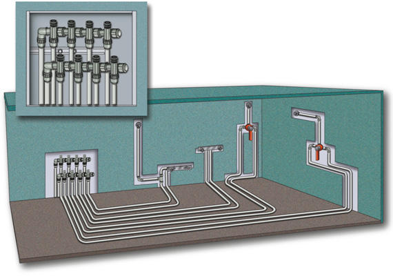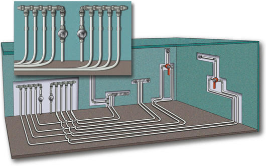 Za razliko od tradicionalne “zaporedne” metode omogoča zapiranje vsake veje posebej, kar pride prav pri menjavi radiatorjev, odzračevalnih ventilov, predvsem pa pri menjavi radiatorskih ventilov.